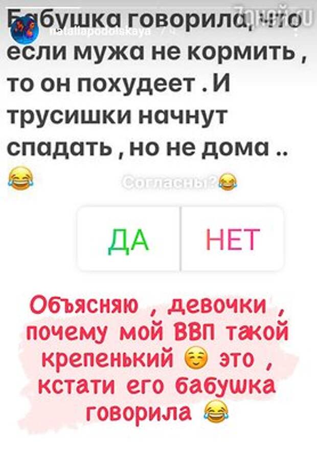 Сама Наталья сейчас усиленно худеет — видимо, озвученное правило распространяется только на представителей сильного пола.