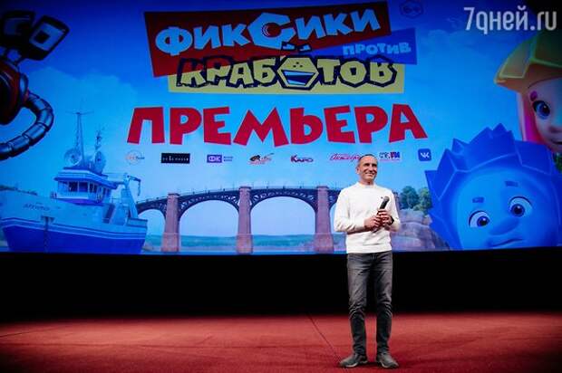 «Дорогие друзья, мы очень рады видеть вас на нашей премьере мультфильма «Фиксиски против кработов», — сказал со сцены основатель и продюсер проекта «Фиксики» Георгий Васильев, — Вместе со мной фильм представляют режиссеры и продюсеры нашего мультфильма.