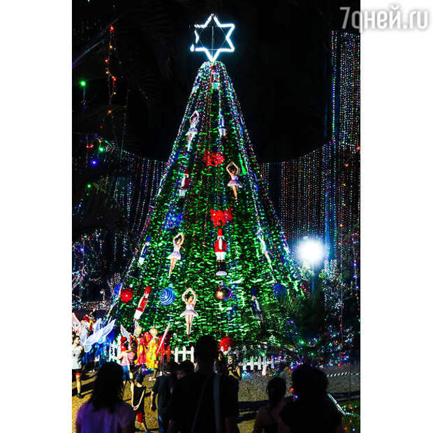 Этот высокотехнологичный шедевр с балеринами и санта-клаусами в виде украшений установлен в парке развлечений Spiritual Center Sacred Sky Christmas Wonderland бразильского города Сорокаба.