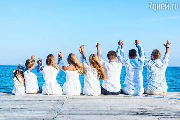 Татьяна Навка с семьей в полном составе отдыхает в Италии. Фигуристка и Дмитрий Песков собрали всех своих детей под одной крышей. В микроблоге фигуристки появилось редкое фото, на котором она запечатлена в окружении родных. Рядом с Татьяной на фото позируют: её дочка от первого брака — Александра, наследники Дмитрия Сергеевича от прежних отношений — Мик, Дени, Николай и Елизавета, а также общий ребенок пары — трехлетняя Надежда.
