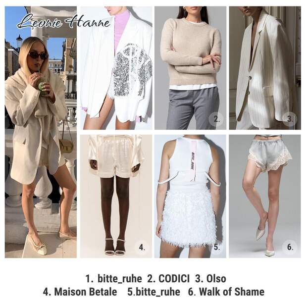 В этом расслабленном, но шикарном образе Леони мастерски смешивает ткани и фактуры, сохраняя цветовую гамму. Главное — не бояться экспериментировать и создавать свои собственные, уникальные сочетания.