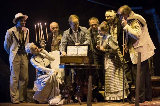 Эффектная сценография Виктора Герасименко, пластический язык хореографа Альберта Альберта, музыкальные решения от композитора Ричардаса Норвилы и 25 артистов труппы пробуют найти ключи к разгадке пушкинских смыслов.