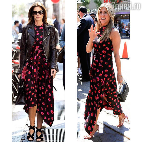 А 51-летняя Синди Кроуфорд в таком же точно платье в сочетании с курткой из кожи была замечена в Милане осенью этого года.Статьи по теме: