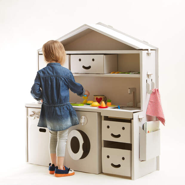 Кухня или магазин: Несколько коробок разного размера могут превратиться в настоящую игровую зону. Одна станет плитой, другая — холодильником, а из маленьких коробочек получатся отличные ящики для «продуктов».