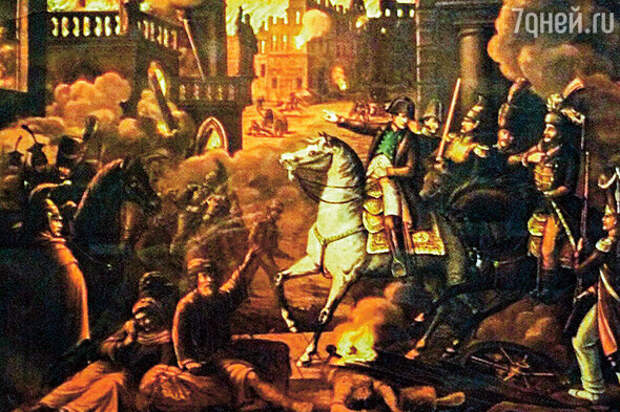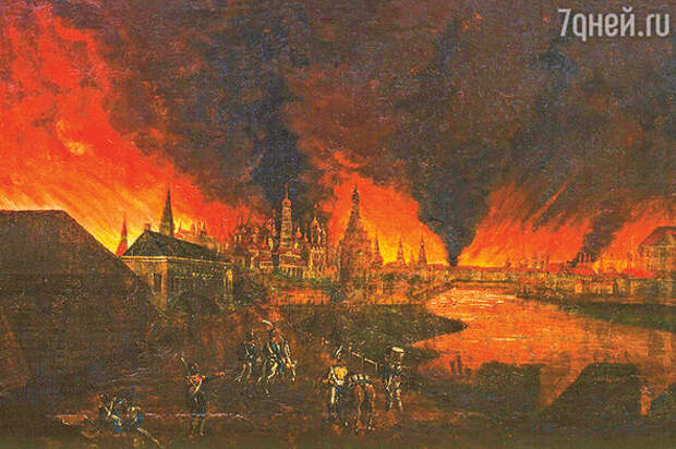 Четвертого сентября Наполеон подошел к окну и испуганно отшатнулся — настоящее море огня подступало к Кремлю со всех сторон, солнце скрылось за черным дымом, висевшим над городом. С трудом выбравшись из Кремля и едва не сгорев в районе Арбата, французский император занял загородный Петровский дворец, откуда писал жене: «Я не имел представления об этом городе. В нем было 500 дворцов, столь же прекрасных, как Елисейский, обставленных французской мебелью с невероятной роскошью, много царских дворцов, казарм, великолепных больниц. Все исчезло, уже четыре дня огонь пожирает город».