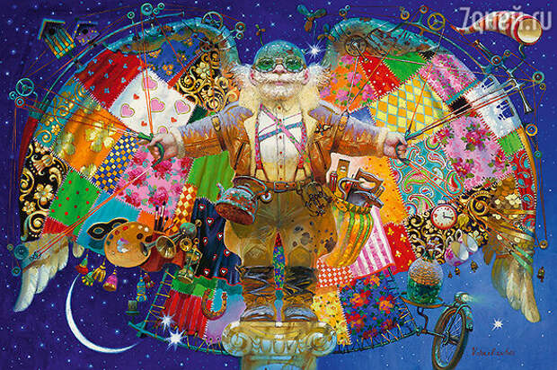 «Вы пишете картины для детей?» — часто спрашивают меня. Нет, они скорее для взрослых. Нередко в галерее, где выставляюсь, смотрю из какого-нибудь угла на посетителей: иной забежит, да хоть после ресторана, и явно неожиданно для себя остановится перед моей работой. Посмотрит, обернется — а на лице улыбка. И я понимаю: человек забыл, куда шел, потому что увидел выдуманный мир, который ему до боли знаком. Отходит от картины и снова приближается к ней, не понимая, что с ним. А это повеяло оттуда — из его детства.