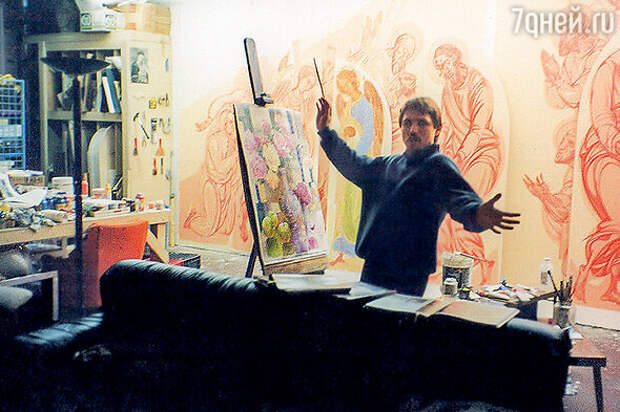 Большая гостиная, которую себе под мастерскую и присмотрел, стала причиной того, что мы купили этот дом. Ему сто десять лет, он теплый, светлый, уютный. Я занялся недавно небольшим ремонтом, задумал сделать пристройку, для меня строительство — отдых. Не могу бездельничать, я тогда с ума схожу, и если не пишу картин, делаю что-то руками. Соорудил когда-то в саду теремок для детей, они уже из него выросли, и я летом стал его разбирать, а фундамент-то крепкий, бетонный! Принялся разбивать его кувалдой, вспотел весь, дочка в окно увидела мои старания и говорит маме: