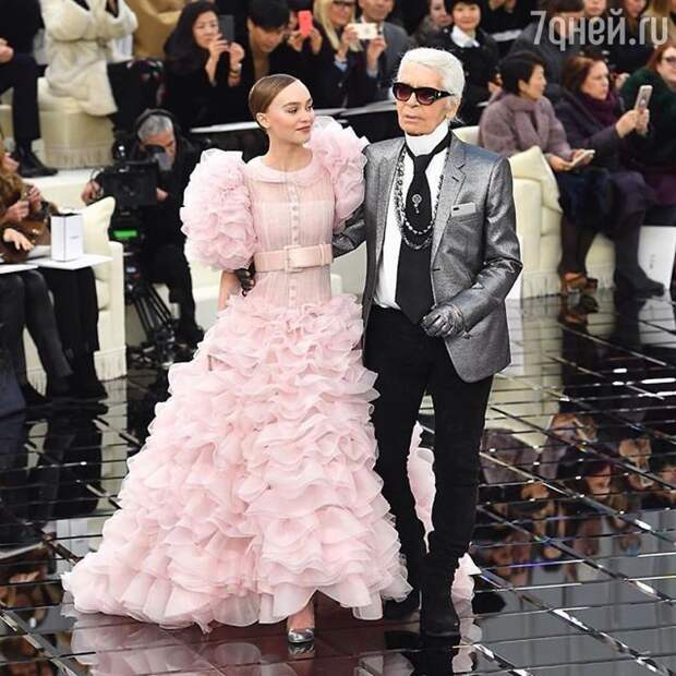 17-летняя Лили-Роуз Депп оказалась в центре всеобщего внимания на показе Chanel в рамках Недели Высокой моды в Париже. Ей доверили самую почетную миссию: завершить дефиле под овации зала. В обнимку с самим маэстро Карлом Лагерфельдом девушка прошлась в финале шоу в роскошном розовом платье от Chanel с пышными рукавами и гигантским шлейфом.
