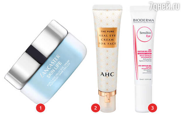 1. Крем для области глаз Skin Life LANCASTER. 2. Крем для кожи вокруг глаз и всего лица The Pure Real Eye Cream For Face AHC. 3. Гель для контура глаз Bioderma Sensibio.