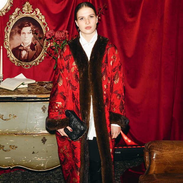 Пятую строчку в нашем меховом гиде занимает тренд на изделия в русском стиле, о котором сегодня так много говорят и пишут. Как у героини из сказки Пушкина о царе Салтане. Эти строчки помнят наизусть все: «Три девицы под окном пряли поздно вечерком».