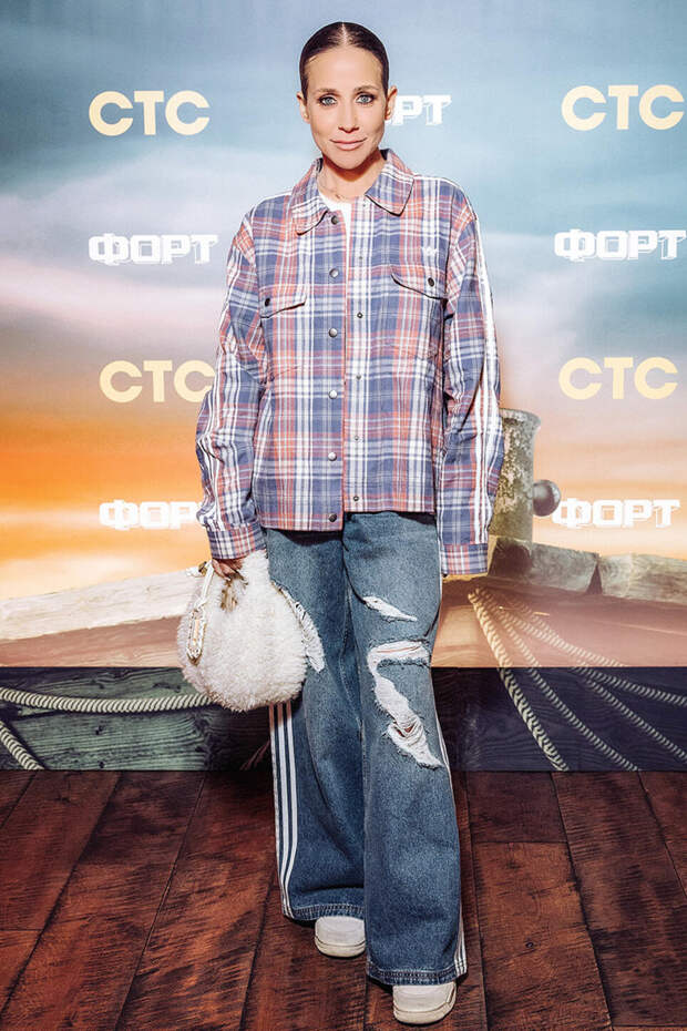 Джинсы, как у Юлии Барановской, прекрасно «дружат» с меховым аксессуаром, получается очень гармоничный комплект. А самое трендовое сочетание — total denim look плюс пушистая меховая сумка.