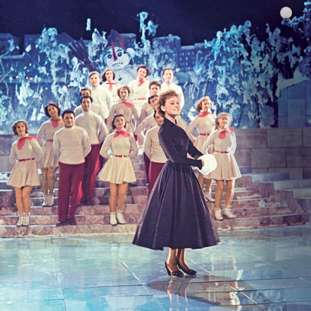 Леночка Крылова из комедии Эльдара Рязанова «Карнавальная ночь» в исполнении Людмилы Гурченко покорила зрительниц своей белой меховой муфтой. Точно такую же потом захотели приобрести себе многие модницы в СССР. Платье для Гурченко подобрали в стиле new look Кристиана Диора — с подчеркнутой талией и широкой юбкой клеш. Муфта стала идеальным дополнением к такому наряду.