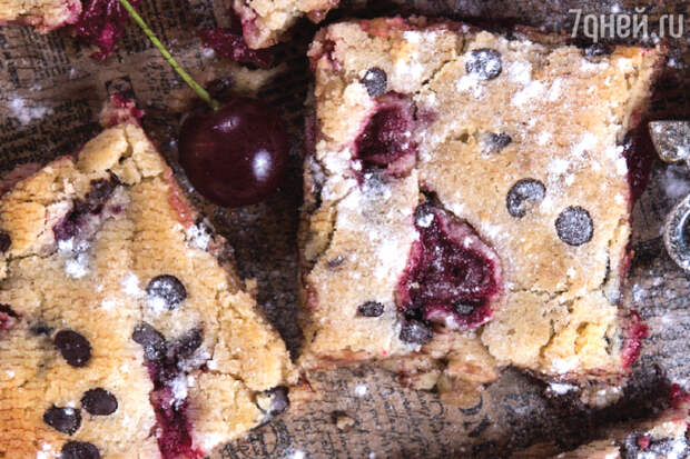 - В конце вмешать шоколадные капли и вишню и аккуратно перемешать, стараясь не повредить ягоды.