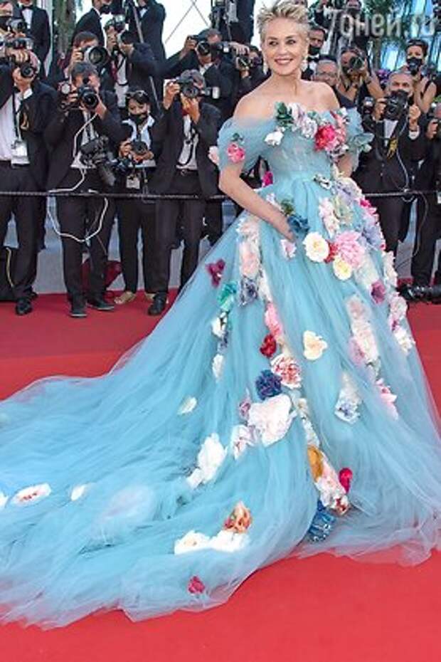 Шэрон выбрала для этого выхода пышное небесно-голубое платье в пол с открытыми плечами и шлейфом из органзы, украшенное очень крупными и яркими аппликациями в виде цветов. И хотя этот наряд оказался творением всемирно известно бренда Dolce&Gabbana, он вызвал неоднозначную реакцию критиков. Одни назвали платье сказочным, а вот недоброжелатели Шэрон решили, что его создатели определенно утратили чувство меры, а сама Шэрон была похожа в нем на «пожилую Золушку на балу».На самом деле хейтеры актрисы были неправы. Для своего возраста звезда «Основного инстинкта» выглядит прекрасно, а ее стройности могут позавидовать гораздо более молодые женщины. В своем недавнем интервью актриса призналась: такая форма дается непросто, для ее поддержания ей приходится много работать и следить за собой. Шэрон рассказала, что она придерживается исключительно здорового питания и старается спать не меньше 8 часов в день. К тому же, как утверждает актриса, она каждый день плавает в бассейне энергетически затратным стилем баттерфляй, делает в спортзале упражнения, среди которых Стоун особо выделила приседания и планку. Как поведала Шэрон, ее младшие приемные сыновья Лейрд и Куинн, живущие с ней, постоянно устраивают маленькие соревнования — кто дольше продержится в этой позе.