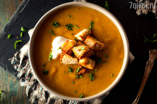 - Выньте корицу, разлейте суп по подогретым тарелкам и посыпьте рубленой петрушкой.