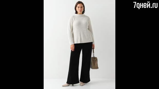 Другой вариант — расклешенные брюки. Важно выбирать такие модели, верхняя часть которые не обтягивает бедра, а держит свою форму. Небольшое расширение брюк от колена позволяет сделать фигуру более гармоничной и дает просто для стильных экспериментов.