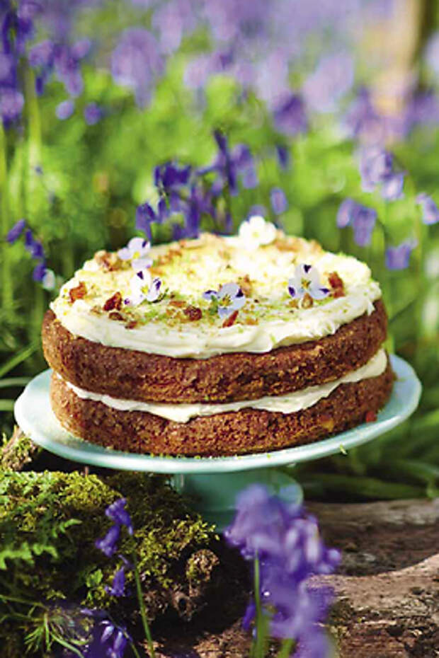 Добавьте сливочный сыр, мелко натертую цедру и немного сока 1 лайма, снова взбейте (важно не перевзбить крем) и поставьте в холодильник. Сделайте посыпку. Насыпьте сахар в сковороду с антипригарным покрытием, плесните немного воды и поставьте на средний огонь. Встряхните, чтобы сахар лег ровным слоем, но не перемешивайте — можно только покачивать сковороду. Когда получится светло-золотистая карамель, добавьте орехи и щепотку соли, перемешайте и вылейте на лист смазанной маслом бумаги для выпечки. Когда карамельный пласт застынет, измельчите его в крошку (для торта понадобится примерно половина, остатками можно посыпать мороженое).Соберите торт. Положите один корж на подставку для торта и смажьте половиной крема. Накройте вторым коржом, намажьте оставшимся кремом и посыпьте цедрой второго лайма. Посыпьте пекановой крошкой и при желании украсьте съедобными цветами — например, фиалками или цветками пряных трав. Съесть кусочек такого торта с чашкой чая — настоящее счастье.