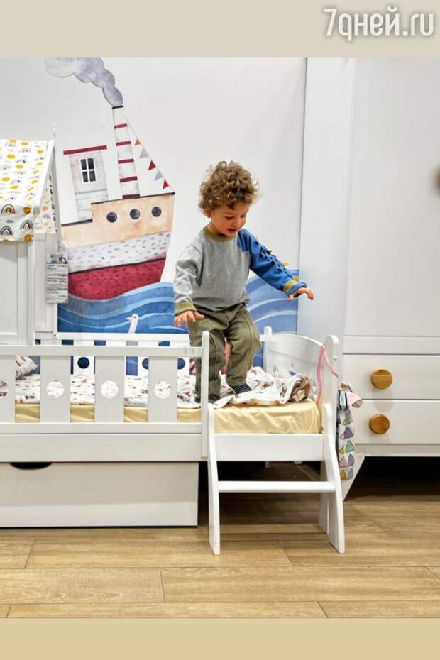 Актриса рассказала, что целью похода семейного шоппинга стала покупка новой кровати для Гаспара. Мальчик заметно подрос и на прошлом спальном месте ему теперь тесно.