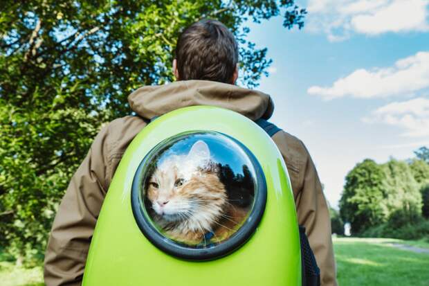 - Прогулки по городу. Время от времени появляется нужда пройтись с котом по улице, проехать на общественном транспорте, зайти в магазин. Для таких целей подойдет переноска-рюкзак. Пока хозяева прогуливаются или катаются на велосипеде, коты могут чувствовать себя в безопасности внутри рюкзака, наблюдая за миром из широких окон, предлагаемых этим типом переноски. И хотя кошачьи переноски могут быть тяжелыми, ношение рюкзака с двумя лямками позволит распределить вес на плечи, а не на одно плечо или в руку.
