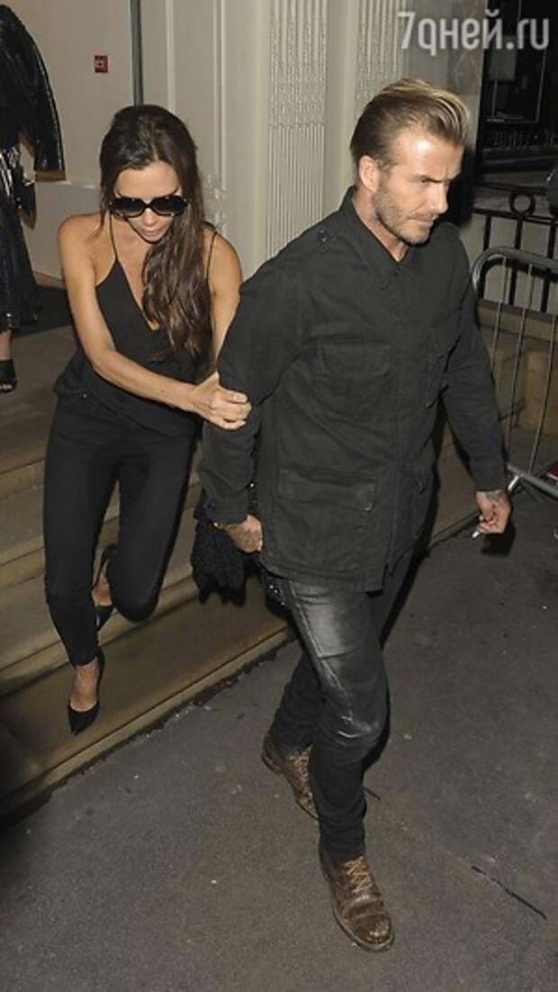По свидетельствам очевидцев, супруга Бекхэма была настолько пьяна, что едва держалась на ногах. Она крепко вцепилась в плечо Дэвида, чтобы удержаться на ногах. Футболист, с выражением лица, не предвещающим для жены ни чего хорошего, поскорее увел подгулявшую супругу в машину, в которую, кстати, Виктории удалось забраться не сразу. Однако не состояние Вики вызывало бурные обсуждения среди поклонников звездной пары, а пятно на ее черных брюках, предательски расползшееся в районе паха. Хочется верить, что женщина просто пролила на себя, например, коктейль, или бокал вина. Вечно в этих английских пабах тесно, а столики слишком маленькие. Но оказия, приключившаяся с Викторией, тут же породила новую волну слухов о том, что «корабль» Бекхэмов, под названием семья, похоже «дал серьезную течь»...О сложностях в семействе Бекхэмов поговаривают на протяжении полугода. Прохожие не раз становились свидетелями их бурных ссор прямо на улице. К тому же, Виктория этим летом начала посещать специалиста, который помогает ей избавиться от татуировки на спине посвященной Дэвиду. «Я принадлежу тебе, а ты — мне!» — такую надпись можно было прочесть на ее спине еще год назад. Но теперь текст, благодаря усилиям ее косметолога, становится все бледнее и бледнее.