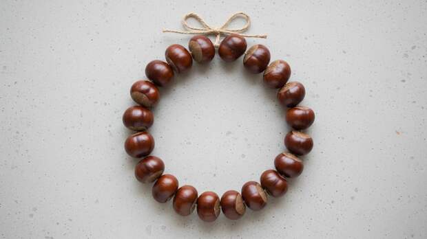 Завершаем: Когда все каштаны будут на нитке, завяжите ее концы на крепкий узел.