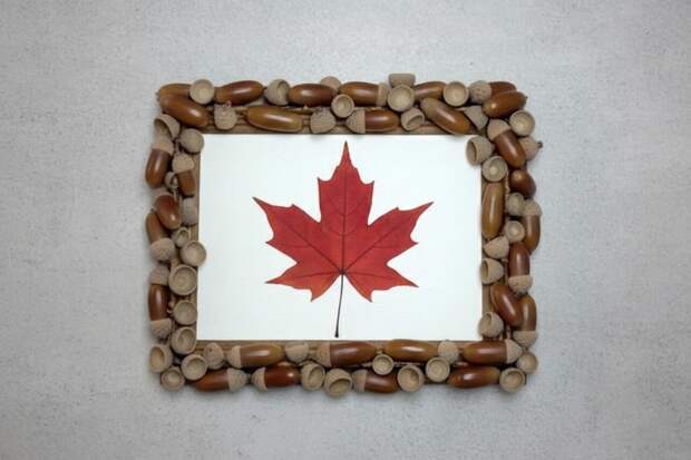 Финальный штрих: Готовую рамку можно оставить в ее натуральном виде. А можно проявить фантазию и вместе с ребенком раскрасить желуди яркими красками или слегка побрызгать краской-спреем из баллончика (делайте это на улице или на балконе), чтобы добавить немного осеннего блеска.