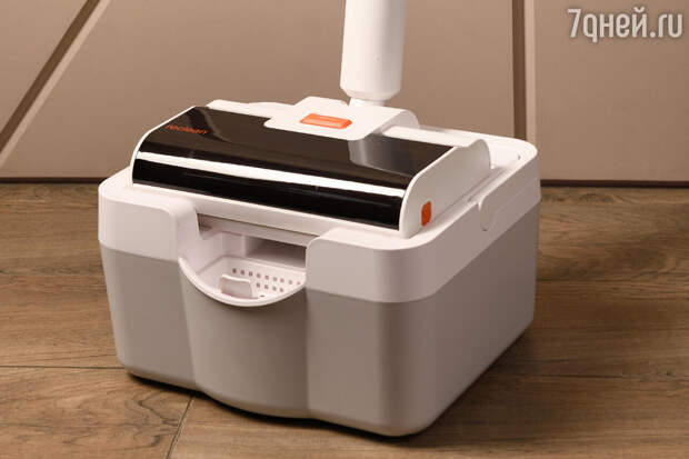 Приятным бонусом станет то, что после уборки вам не нужно чистить электрошвабру вручную. Этим процессом занимается встроенная станция самоочистки, состоящая из двух резервуаров — для чистой и грязной воды. Для начала автоматической очистки достаточно установить станцию на швабру и нажать кнопку на ручке. Вода из чистого бачка под напором промоет ролик и удалит из него мусор, после чего вам останется только опустошить контейнер с грязной водой.