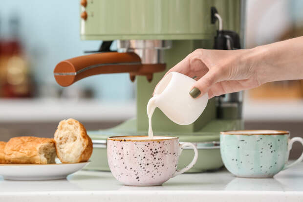 - Молоко имеет значение. Для пышной пены лучше всего подходит пастеризованное молоко жирностью 3.2%. Обезжиренное молоко дает много пены, но она быстро оседает.
