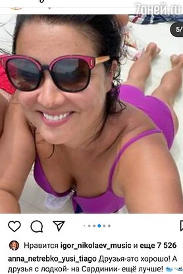 «Друзья — это хорошо! А друзья с лодкой — на Сардинии — ещё лучше!»— подписала серию снимков и видеороликов из отпуска Анна Нетребко.