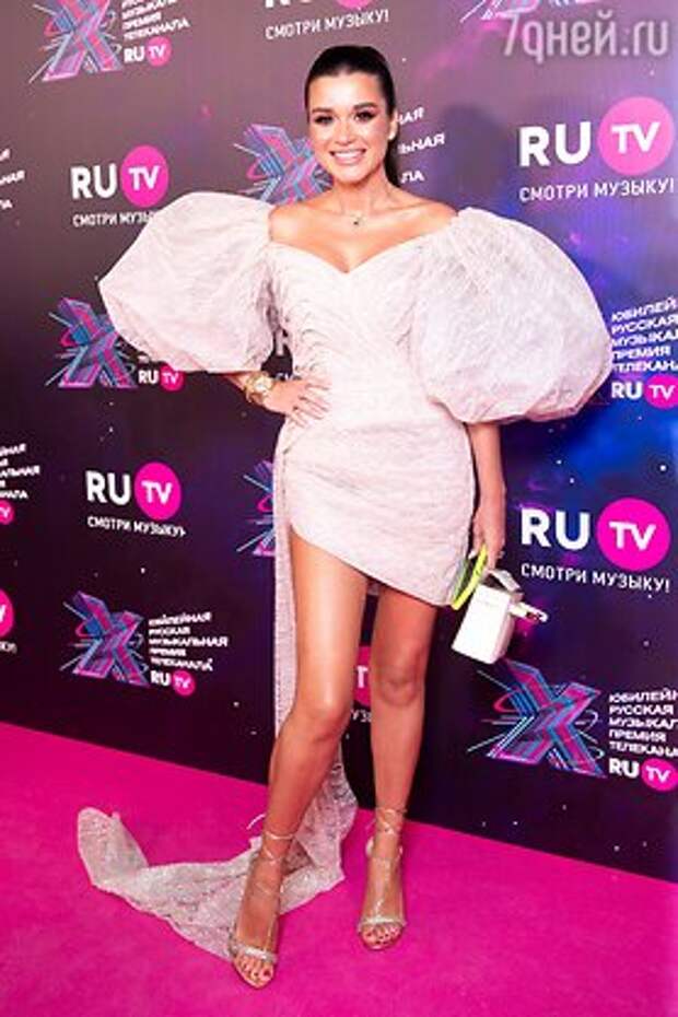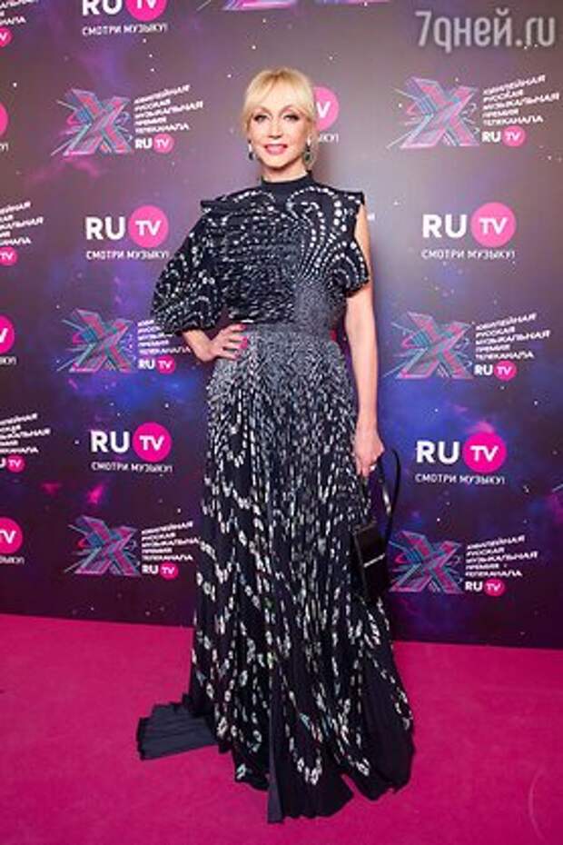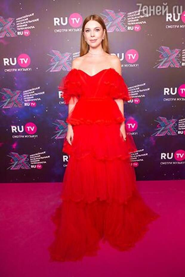 Регина Тодоренко появилась на дорожке в оригинальном наряде, украшенном жемчугом. Как выяснилось позже, это был далеко не единственный наряд. Телеведущая привезла с собой аж десять платьев – столько же, сколько лет проводится премия.