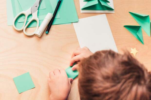- Цветная бумага (зеленая – для елочки, желтая – для звезды).