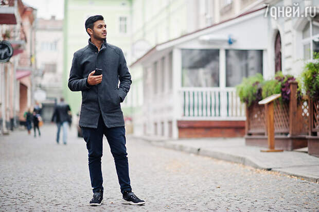 Вещь смотрится на таких мужчинах, как будто у старшего брата взял свитер поносить на два размера больше.Пальто с кедами