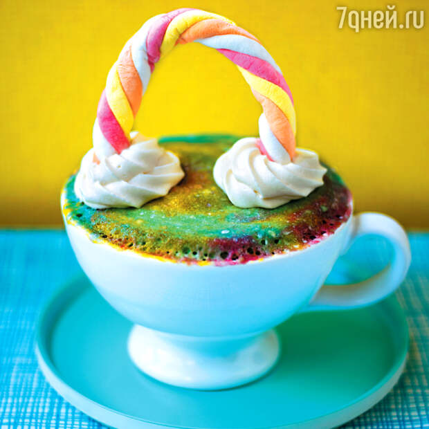12. Возьмите разноцветную тянучку или маршмеллоу, перекрутите, согните дугой и воткните концы в крем, чтобы получилась радуга.