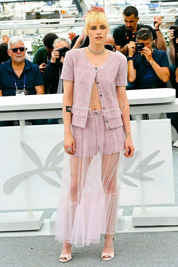 «Очередной странный образ Кристен Стюарт авторства Chanel. По моему мнению, Кристен — идеальная героиня этого модного дома, она одновременно и леди, и пацанка. А это именно то, что сегодня пытается транслировать бренд. Но, по моим ощущениям, розовый цвет точно не подходит Кристен. Она замечательно выглядит в классике: в черно-белом. Здесь же цветовое решение неудачно. Как и форма низа непонятной нелепой конструкции. Все это заставляет только посочувствовать Стюарт».