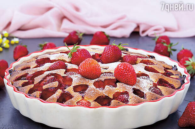 Пышная шарлотка со свежей клубникой: рецепт в духовке с фото пошагово.