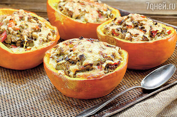 Фаршированная тыква в духовке с курицей, картошкой и грибами в духовке: пошаговый рецепт.